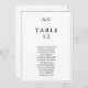 White Monogram Wedding Table Seating Chart Card