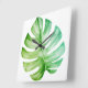 White Monstera Leaf Botanical Tropical Square Wall Clock