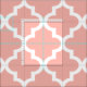 Custom patterned fabric features a white Moroccan quatrefoil pattern with blush peach / pink (can be modified) background colour.