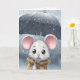 Cute white mouse holding an umbrella in the rain for thinking of you.