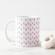 Elegant 11oz white mug featuring a charming pattern of small pink hollow hearts. Perfect for cozy coffee moments or as a sweet gift for loved ones.
