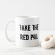 Basic white mug with Umit logo and the saying: Take the red pill.
