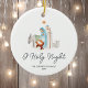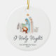 This personalized Christmas holiday ornament is a beautiful addition to any tree. Featuring a beautiful watercolor nativity scene on a crisp white background, this ornament captures the essence of the season in a stunning and timeless way. The "O Holy Night" message adds an extra touch of reverence and meaning to the design, making it perfect for those who want to celebrate the religious significance of Christmas. And with a starry reverse side, this ornament is just as beautiful from the back as it is from the front. You can customize it with your family name, making it a unique and cherished keepsake for years to come.