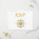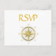White nautical wedding RSVP postcards with gold compass and customizable text