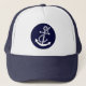 White & Navy Blue Nautical Boat Anchor Trucker Hat