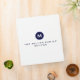 Modern recipe binder features a minimal design in a classic navy blue and white color palette. Custom family name presented in the center in stylish simple font with a complimentary minimal monogram medallion.