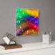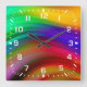 Clock with a white square clock face on a background with rainbow wave stripes in purple, blue, green, red, pink, and yellow. Customizable. Modern and trendy, yet classic, this clock is perfect for any decor.