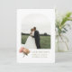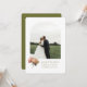 Modern and chic. This lovely wedding save the date card features a beautiful bouquet of voluptuous roses against white and olive green backgrounds. The design includes a couple photo in boho arch frame, contemporary set of fonts in olive green at the front and additional optional text at the back.