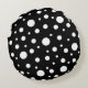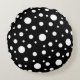 White on Black Polka Dot Pattern Round Pillow