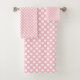 White on Pink Medium Size Polka Dots Bath Towel Set