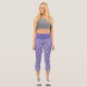 White on purple art-deco pattern capri leggings