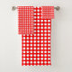 White on Red Medium Size Horizontal Polka Dots Bath Towel Set