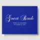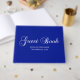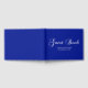 Minimalistic solid royal blue colour background a decorative white contemporary calligraphy script that says "Guest Book".