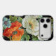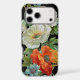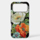 An iPhone case with a vintage floral pattern of white and orange poppies on a black background. Change background colours and more, even save your design for later.