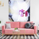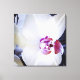This digital colour photo on stretched canvas features a close up of a white orchid with a purple and red centre.