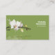 White orchid delicately mirrored by its serene reflection on calm waters, creating a captivating visual representation of the peace and balance that aromatherapy brings. Elevate your practice with a business card that exudes harmony, perfectly tailored for aromatherapists, holistic healers, and wellness practitioners, crafted to leave a lasting impression, showcasing your commitment to natural healing and holistic wellness.