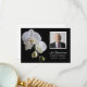 Show appreciation to your guests for remembering your loved-one after their passing at their Celebration of Life Memorial with the elegant White Orchids on Black Sympathy Flat Thank You Note Card. This classy custom flowery funeral tribute thank you features a floral photograph of white phalaenopsis orchid flowers on the stem with a black background and the words In Remembrance. Personalize it with name, birth and death date, and picture.
