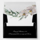 Black wedding envelope depicts a simple watercolor floral design with elegant white orchids and greenery. It features a pre-printed return address on the back and Bible Verse Song of Solomon 3:4, "I have found the one my soul loves." All text can be deleted or customized to details of your choice.
