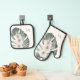 This unique tropical design has a modern island vibe featuring a trio of elegant white orchids and a beautiful monstera leaf in soft watercolors. The design is both simple and elegant with a trendy look energized by the tropical botanical elements. Personalize the text template with your monogram initial for a custom look. This oven mitt and pot holders makes a lovely choice for a tropical kitchen, for a beach house, or coastal or island style home.