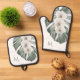 White Orchids Tropical Floral with Monogram Oven Mitt & Pot Holder Set