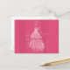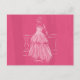 A sketch of a woman in a beautiful gown in white against a brushed pink background.