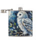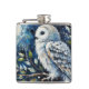 White Owl On Branch in Moonlight Painting Hip Flask