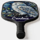 White Owl On Branch in Moonlight Personalized Pickleball Paddle