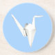 Photograph of a folded white paper crane printed on blue (customizable) background colour. Image 2008 by Margaret E. Cmelik.