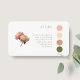Chic with modern elegance. These white wedding attire dress code cards feature a lovely blush pink rose bouquet, contemporary fonts in olive green and 4 complimentary colours as dress code inspiration.