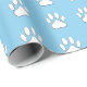 White Paw Print Cartoon Drawing Pattern On Blue Wrapping Paper