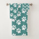 White Paw Prints Design Bath Towel Set with customizable background colour to match your bathroom decor.