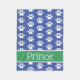 White Paw Prints on Blue With Green Personalized Fleece Blanket