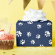 Show your love for animals with this cute white animal paw print design on a blue background.