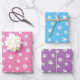 White Paw Prints Pattern Pink Blue Purple Wrapping Paper Sheet