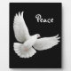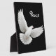 Original fine art painting of a flying white dove by illustrator/designer Carolyn McFann of Two Purring Cats Studio printed on a customizable plaque.