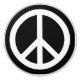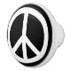 Ceramic drawer knob with a white peace sign on a black background. Customizable.