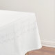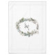 Cette simple nappe blanche de vacances comporte une couronne de branches à feuillage persistant, de feuilles et de baies avec un ruban qui dit Paix et a une zone au centre de la couronne que vous pouvez personnaliser avec votre initiale monogramme. Un tranchant blanc muet est évident sur les quatre côtés.