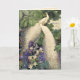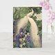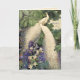 Lovely wildlife scene shows white peacocks among the trees, with purple delphiniums and columbine flowers. All text can be customized or deleted by you..