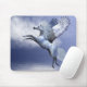 White Pegasus spreads his magnificent wings in flight over an ocean.