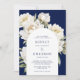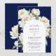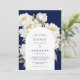 White Peony Floral Navy Wedding Arch Invitation