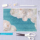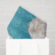 Beautiful elegant tissue paper design featuring white Peony flowers on a distressed turquoise damask pattern.