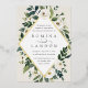 Our White Peony wedding invitation surrounds your wedding day details with a modern geometric frame of painted watercolor greenery, botanical foliage and white rose and peony flowers. Gold foil trim completes the design for a luxe finish.