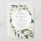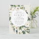 Our White Peony wedding invitation surrounds your wedding day details with a round frame of painted watercolor greenery, botanical foliage and white rose and peony flowers, set off-centre at the upper left for a fresh, modern look.