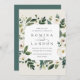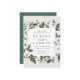 Our White Peony wedding invitation surrounds your wedding day details with a square frame of painted watercolor greenery, botanical foliage and white rose and peony flowers.