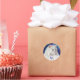 This beautiful personalised custom sticker has a fine art cat portrait by international artist Kitty Harvill. It has a white, long-haired Persian cat with green eyes, looking to the side. The background is a colourful, vibrant blue.