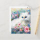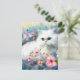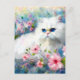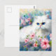 White Persian Kitty Cat Blue Eyes in Pink Flowers Postcard