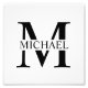 featuring personalized black monogram in classic serif font style with box of name in the middle of monogram on white background.
