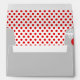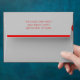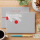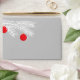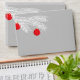 Stylish light grey Christmas card envelope, with graphics of a white pine branch with red Christmas ornaments, along the front top. Personalize the red custom return address, on the back flap, to suit your needs. Matching holiday photo greeting cards are available.