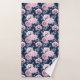White, pink flowers on dark blue. Bath Towel Set