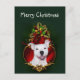 Happy white pitbull terrier face dog lovers Christmas holiday postcard